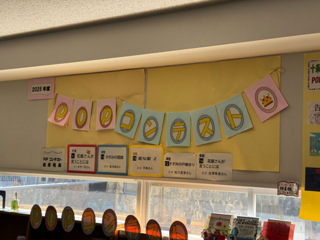 生徒がオススメ本のPOPを作成し、児童や地域の方へ紹介する活動も行われています。