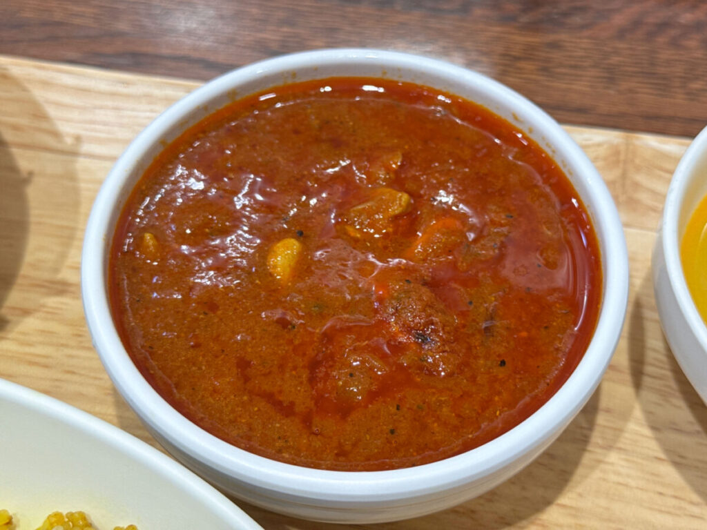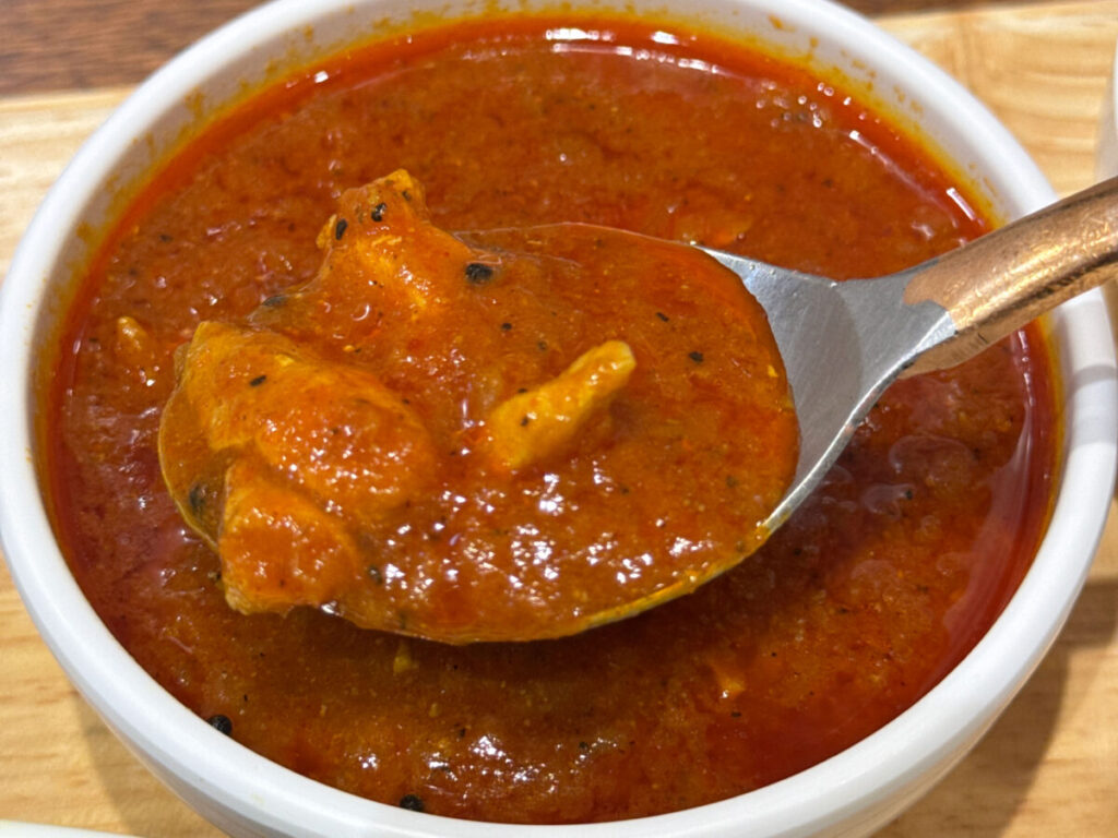 わ〜!トマトベースなんだけど、口当たりがあっさりとしたカレー。しっかり煮込んであるチキンもいいねえ。