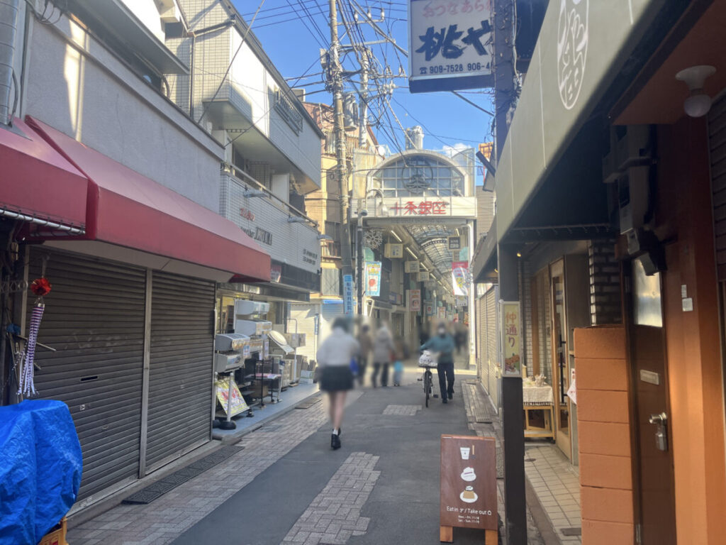 お店を背にして右はこんな感じ。隣は「Bonnel Cafe nook」で、さらに行くと十条銀座西通り。