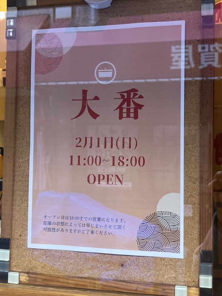 なお、オープン日は18時まで営業の予定とのことですが、在庫状況により早じまいの可能性もあるとのこと。