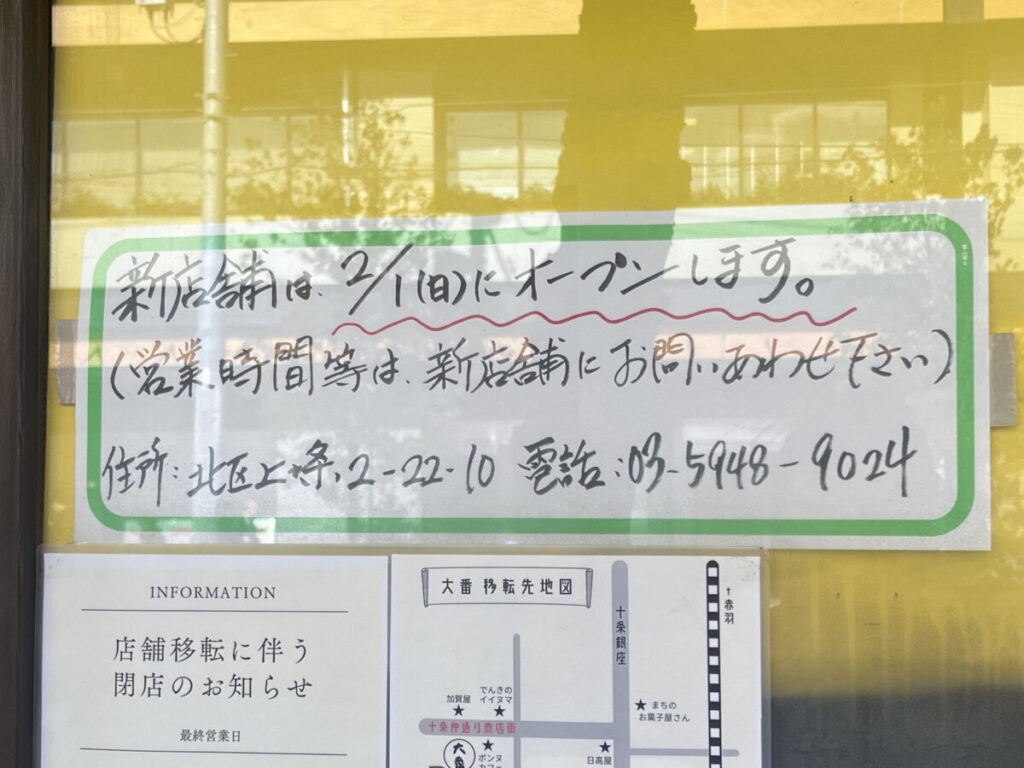 先日から赤マガでお伝えしている、十条の「味の大番」ですが、移転先でのオープンが2月1日(日)に決まったみたい!