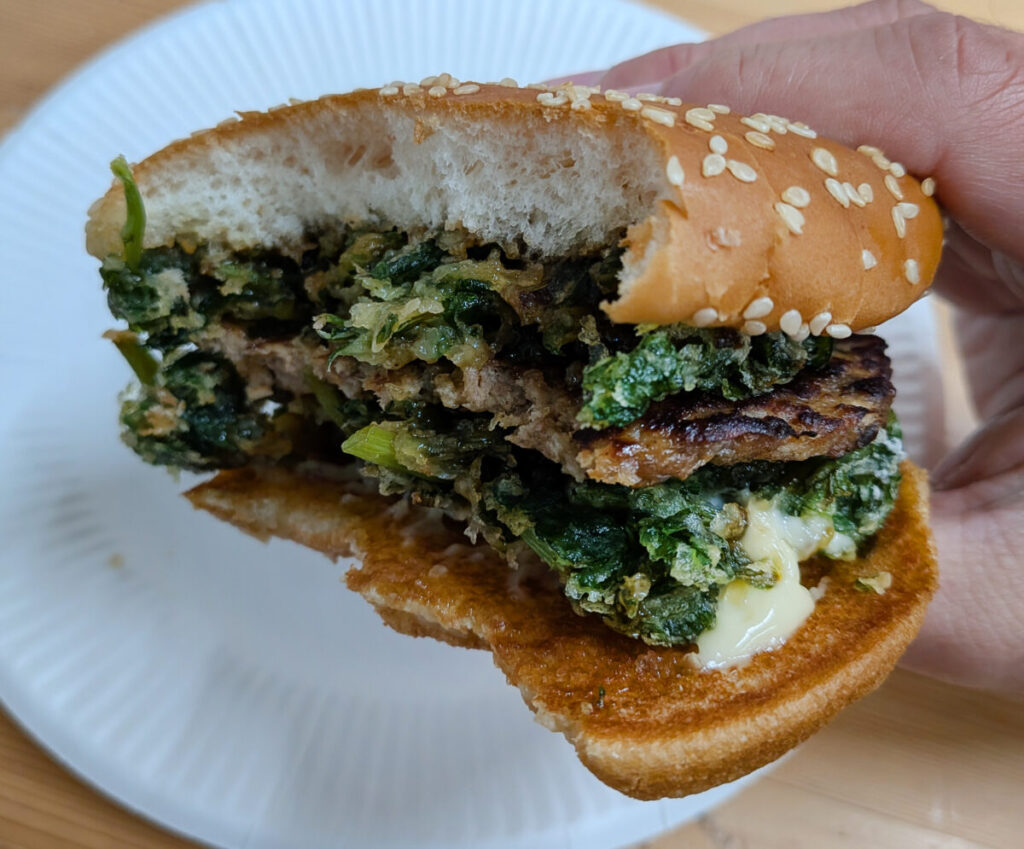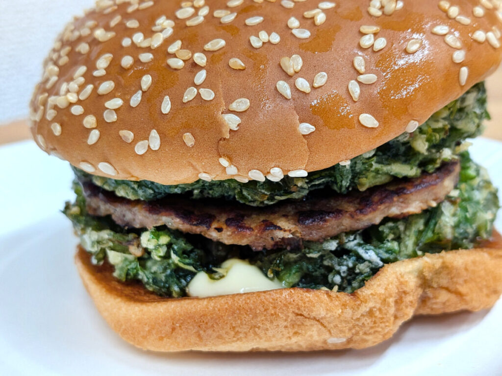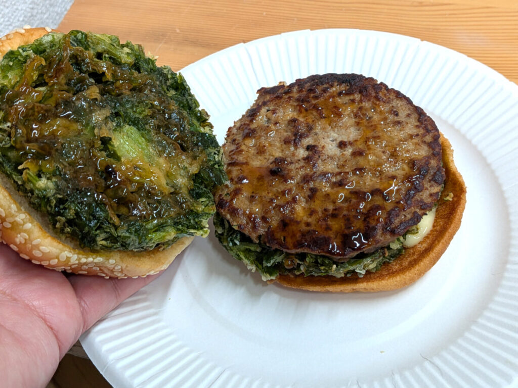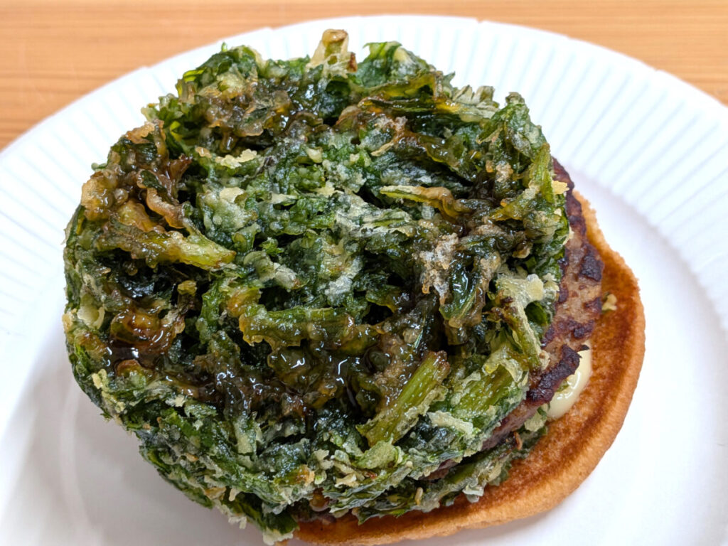おおお~、パティを2つの分厚い春菊のかき揚で挟んでるっ!