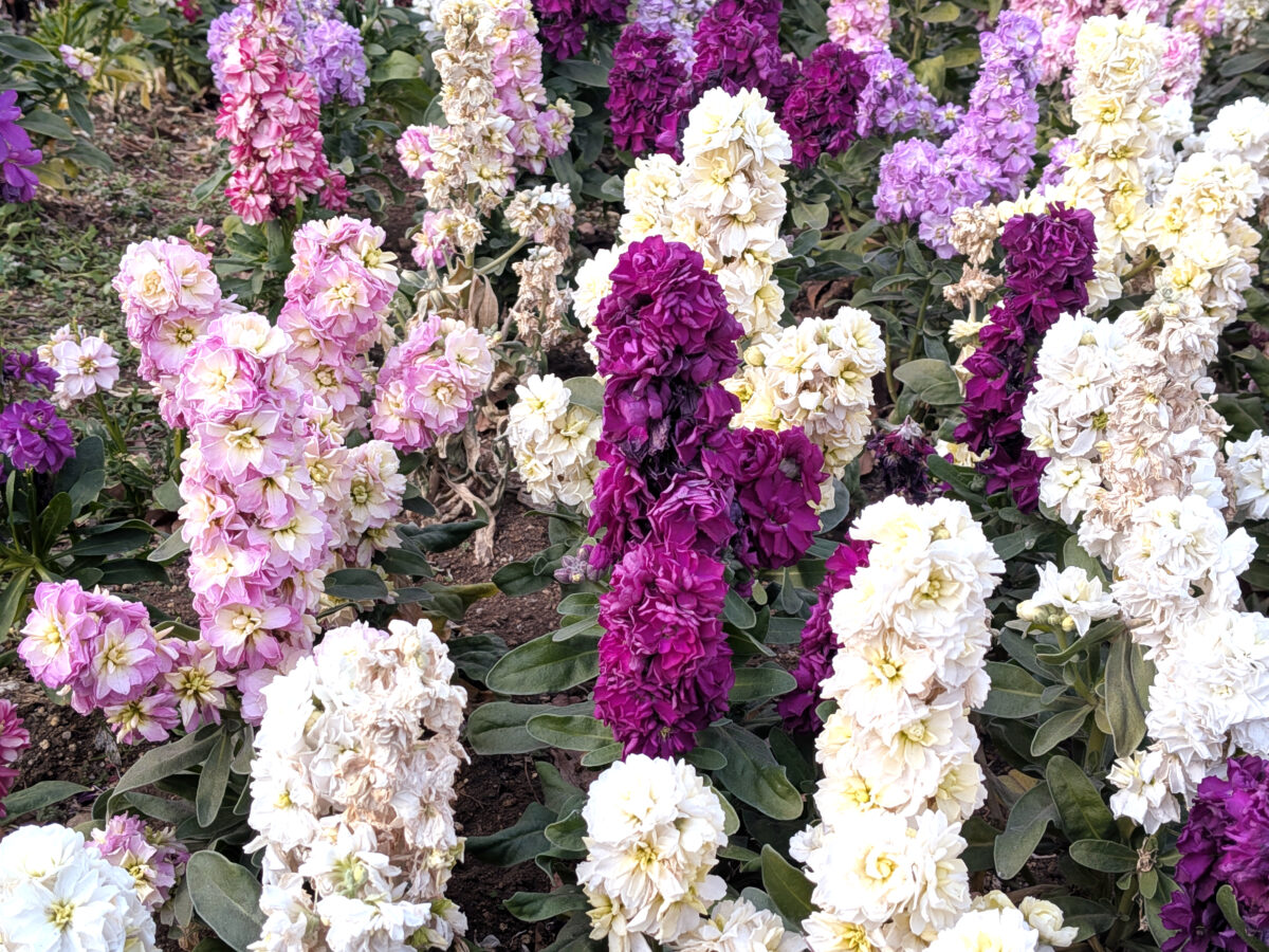 王子駅前公園の花壇が華やかでした。1月26日の様子!王子駅前公園の1月26日の様子。 わ~お!素敵! ストックって花。花言葉は「永遠の美」。 華やかですね...