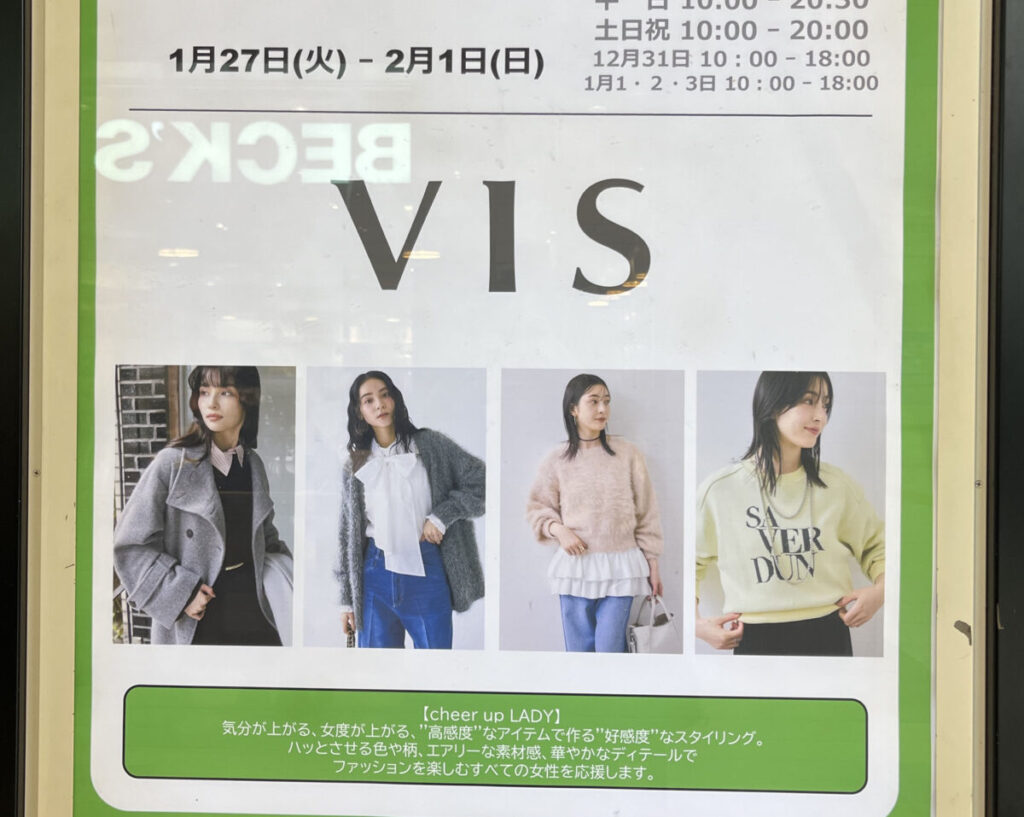 今回出店しているのは、【cheer up LADY】がコンセプトの女性ファッションブランド「VIS」です!