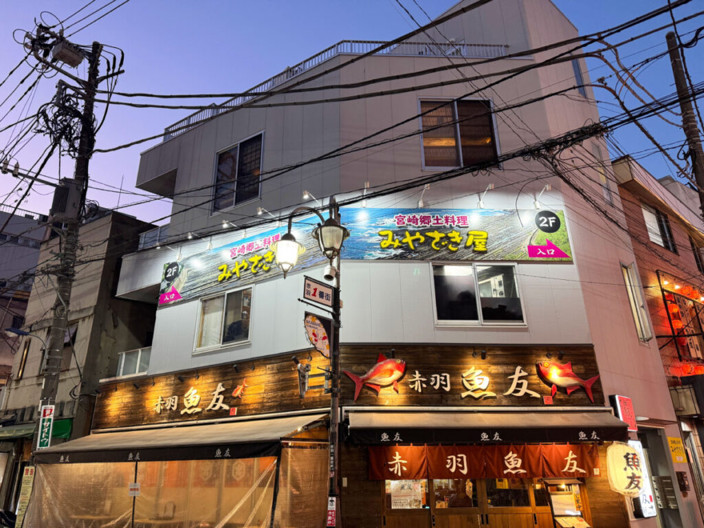 住所は、 東京都北区赤羽1丁目20−1 藤屋ASSORT BUILD 2階。1階には「魚友」があります。