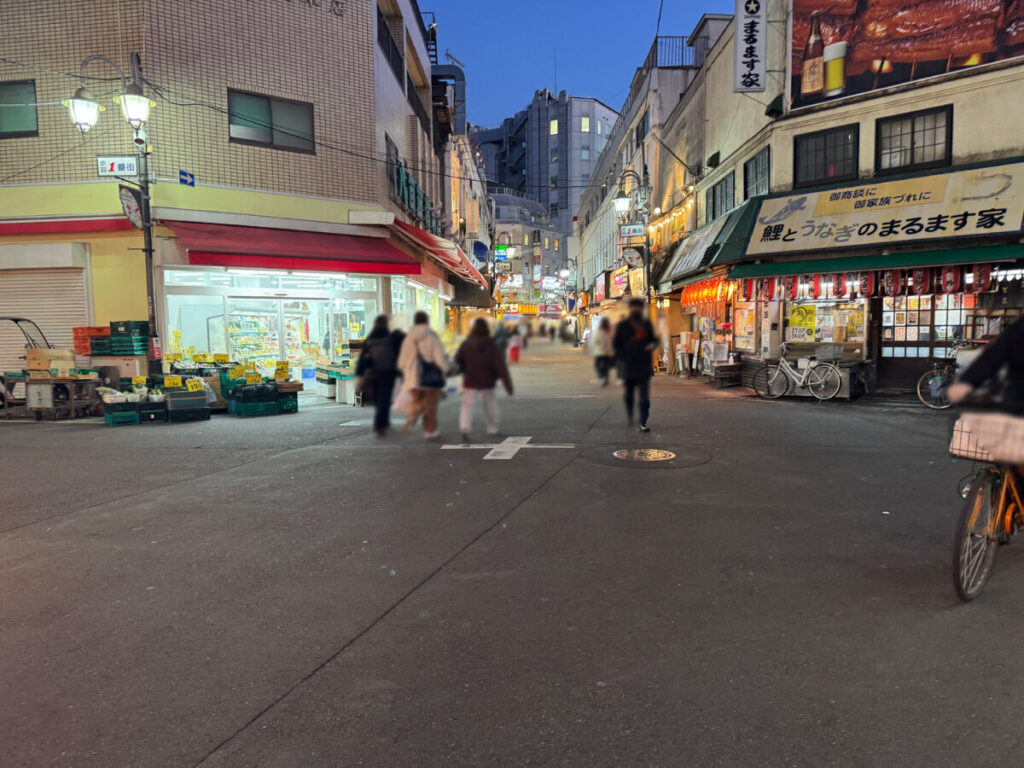 お店の入り口を背にして右はこんな感じ。すぐに「まるます家」や、「八百正総本店」があります。