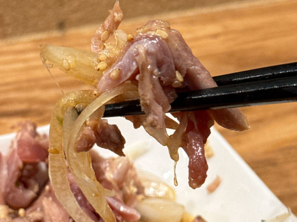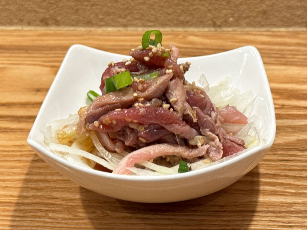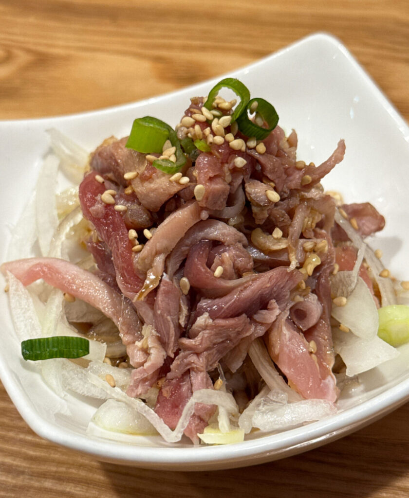 さあ、ここで1品目「鶏のたたき・小(400円)」が運ばれてきましたよ!