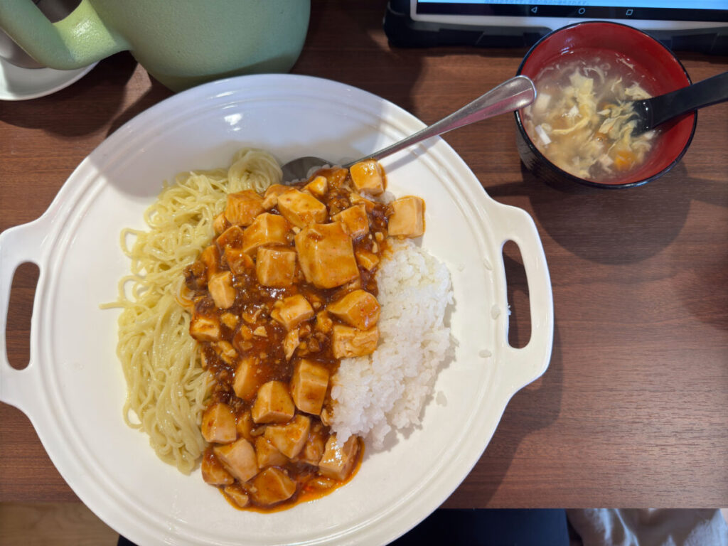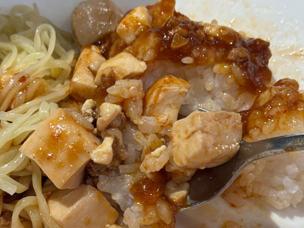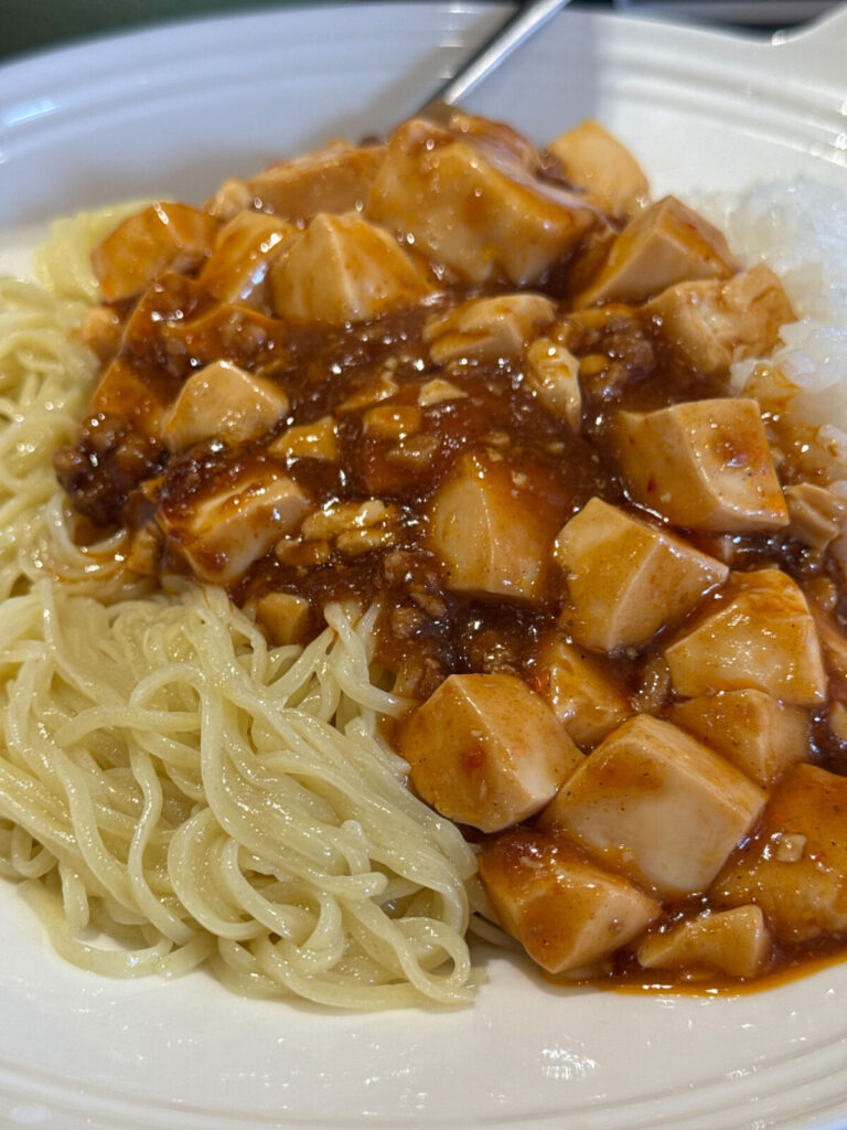 麻婆豆腐に、ご飯、さらに麺まで楽しめる一皿!それがこの「ドラゴン麻婆」か〜!