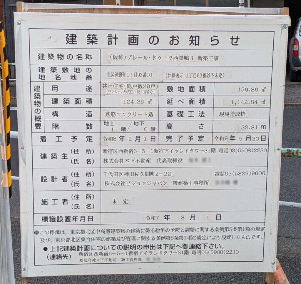地上11階建てのマンションができる予定で、完了は令和9年9月30日。