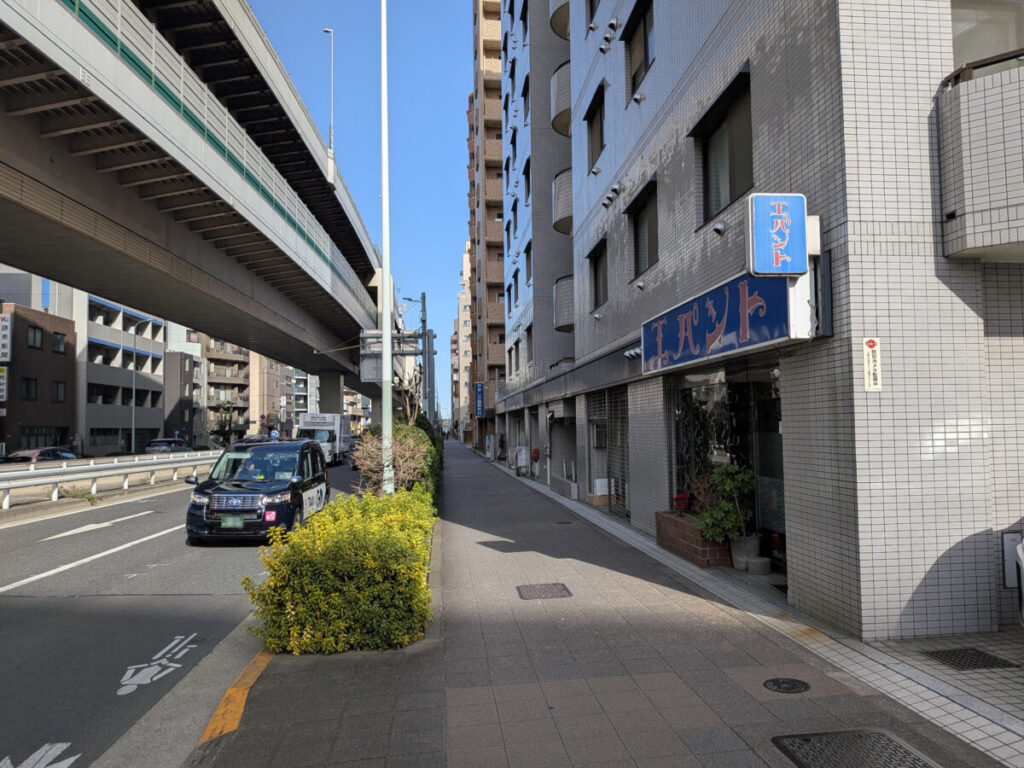 明治通り沿いからこの場所を背にして右はこんな感じ。お隣は「エパント」。