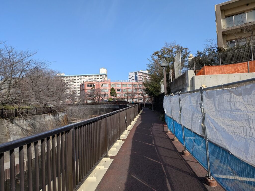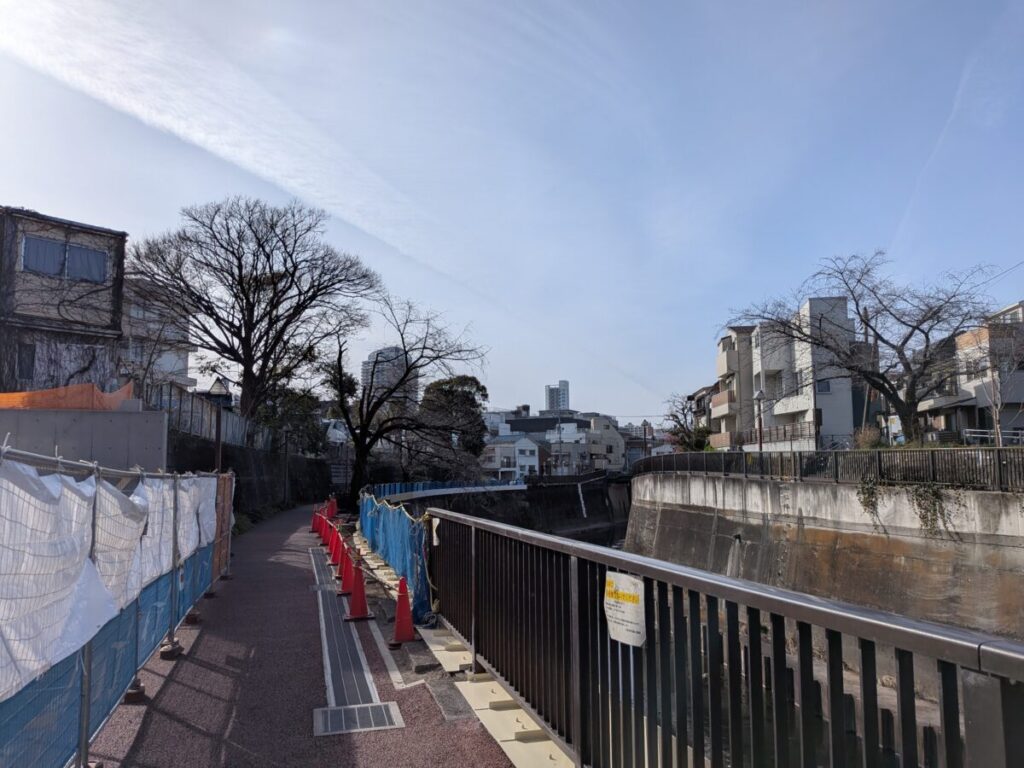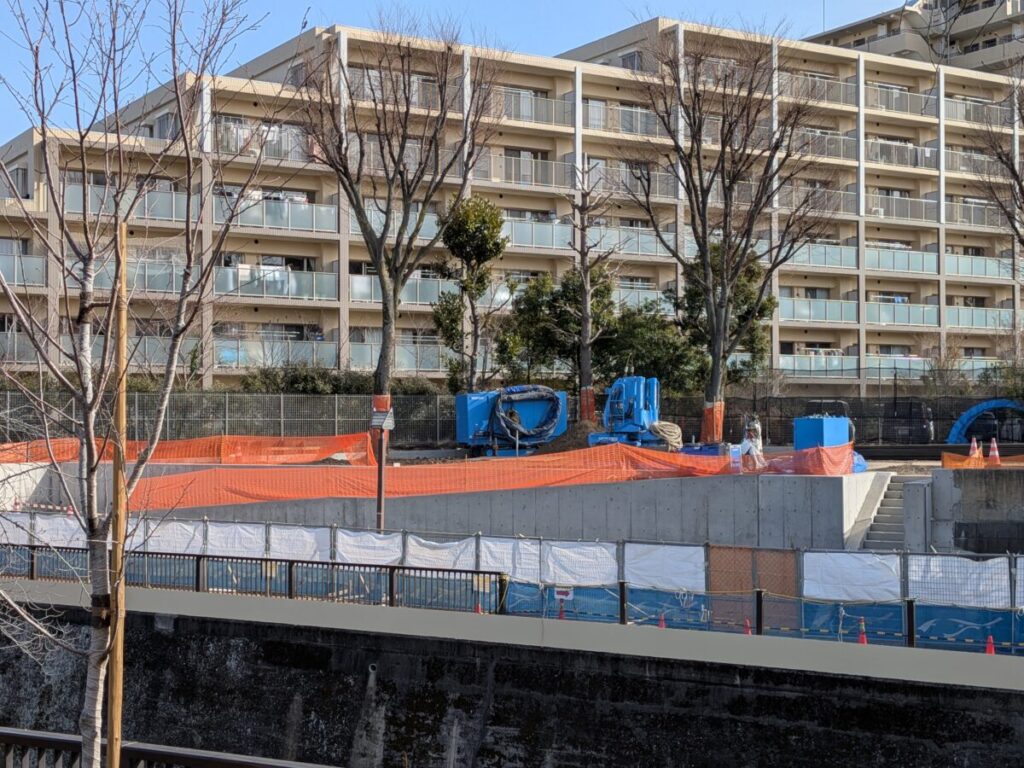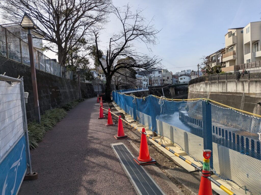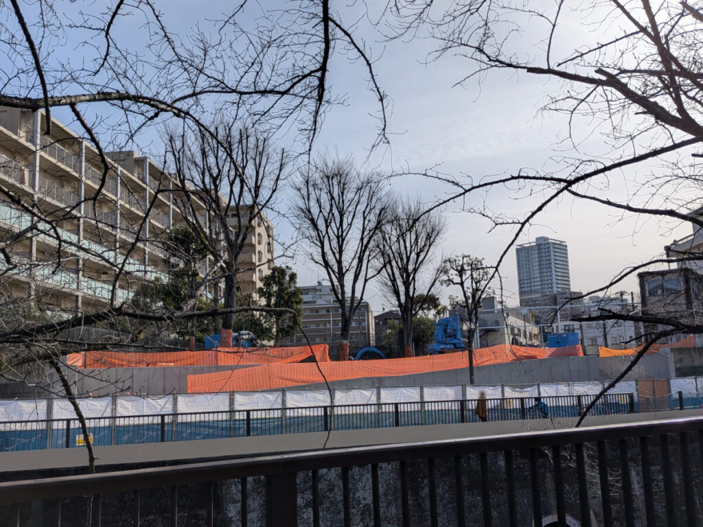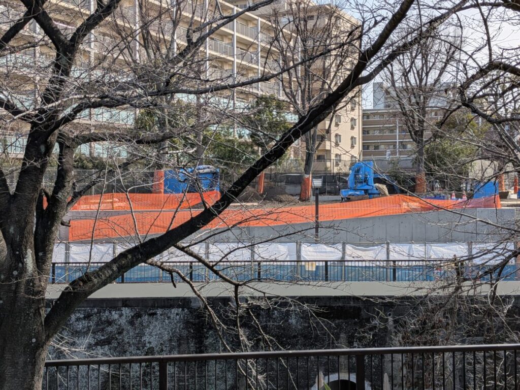 滝野川の石神井川沿いにつくってる新しい公園の様子。