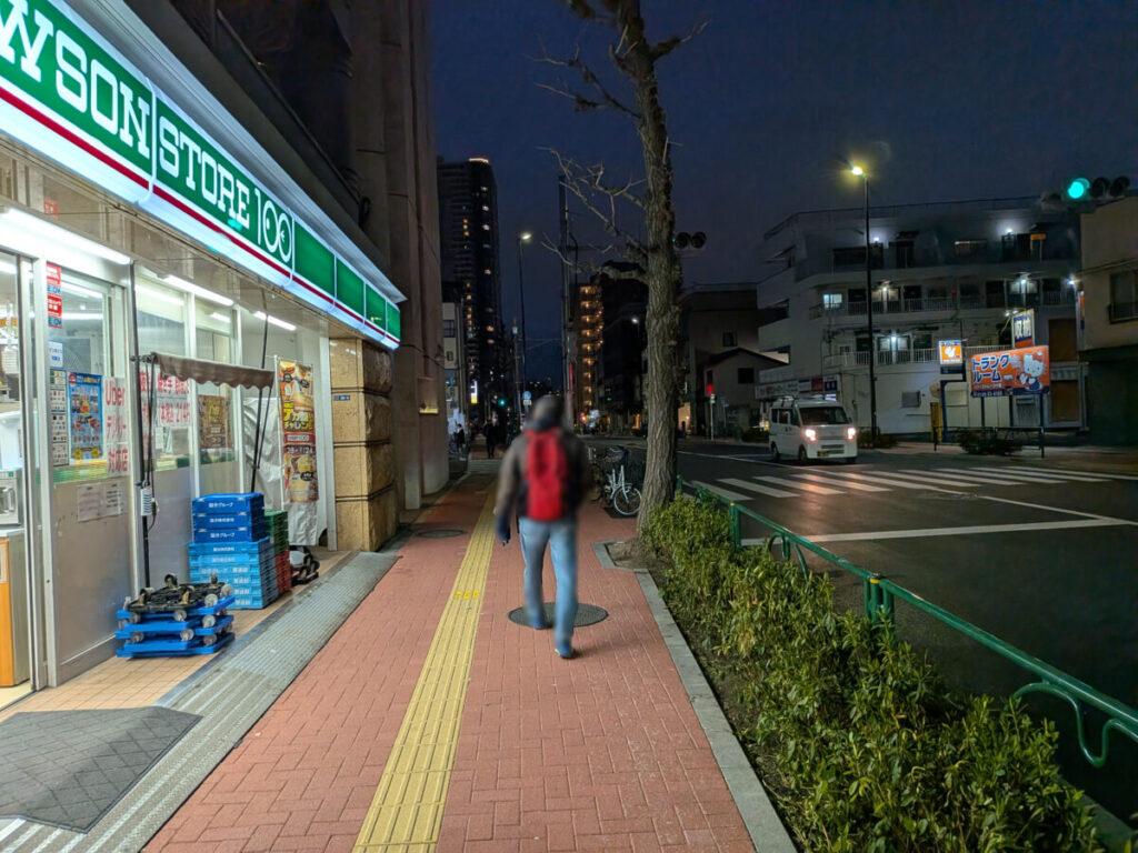 「焼肉 大門」を背にして左はこんな感じ。お隣は、「ローソンストア100 上十条店」で、その先には「New Again Espresso」があります。