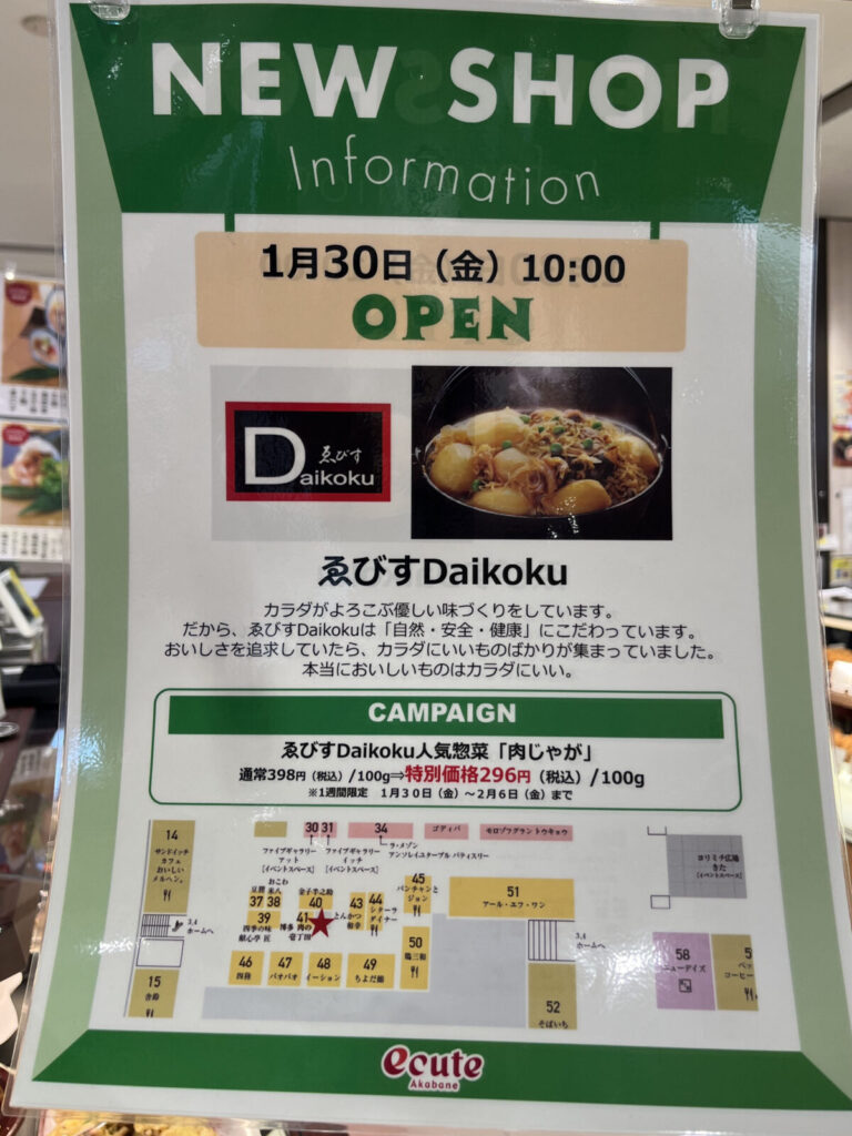 エキュート赤羽きたに、手作り惣菜やお弁当を販売する「ゑびすDaikoku」が1月30日に新オープンしたみたい!