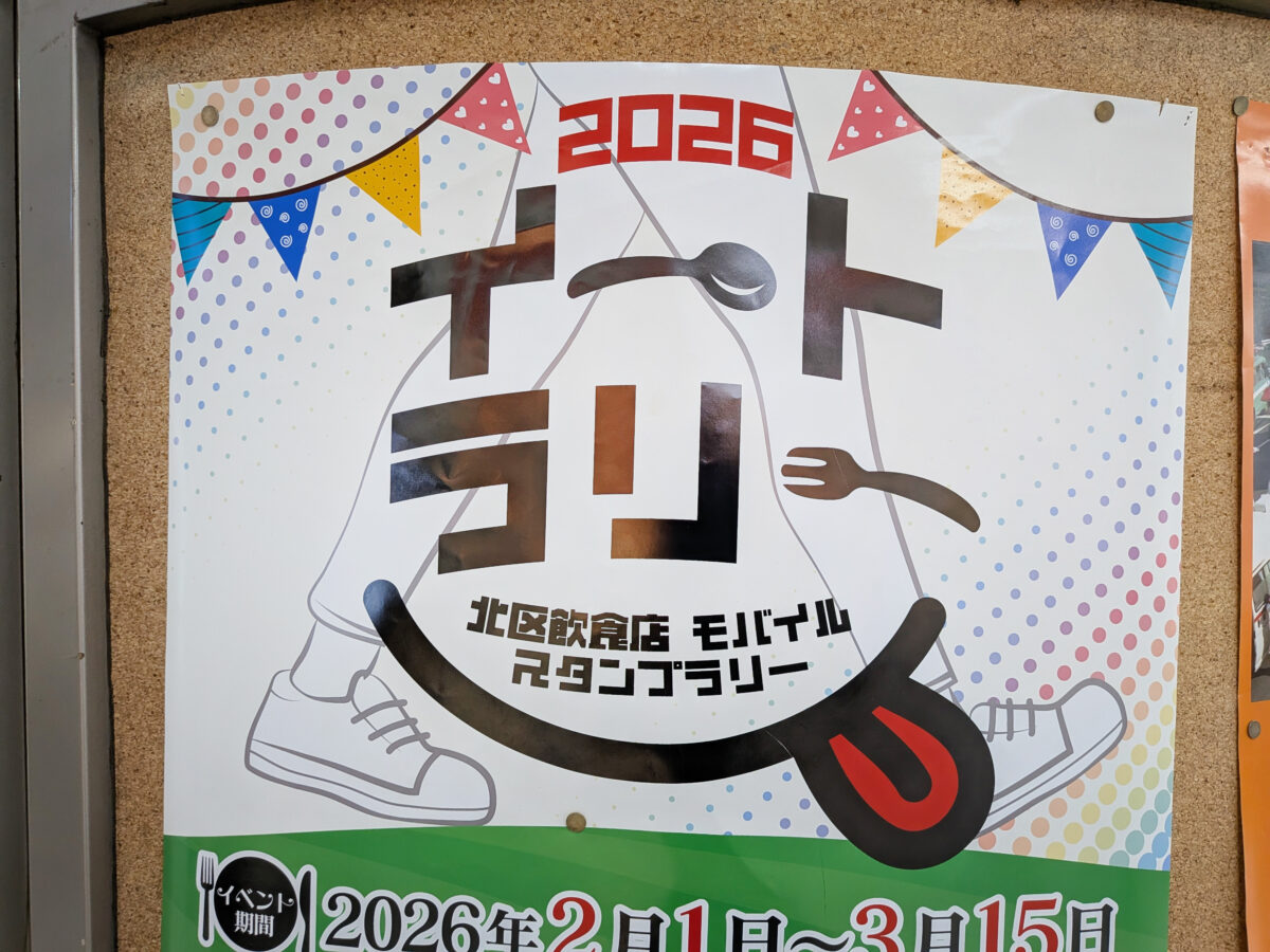 北区の飲食店をめぐる「イートラリー2026」開催してる。 北区の飲食店をめぐる「イートラリー2026」が、本日2月1日から3月15日まで開催されるみたい。 こちらがポスター↓ ポスターによると、参加は無料で、飲食を楽しみながら...
