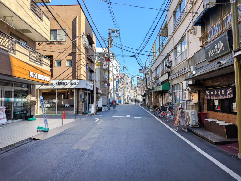 「熟成肉塊貯蔵所 風鈴堂」の跡地を背にして、右はこんな感じ。お隣は机上の空論があって、その先には、コモディイイダ東十条店。