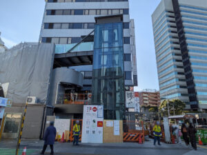 田端駅前に建設中のエレベーターは4月から稼働予定みたい。また、高台通路への階段と併設の公衆トイレは...