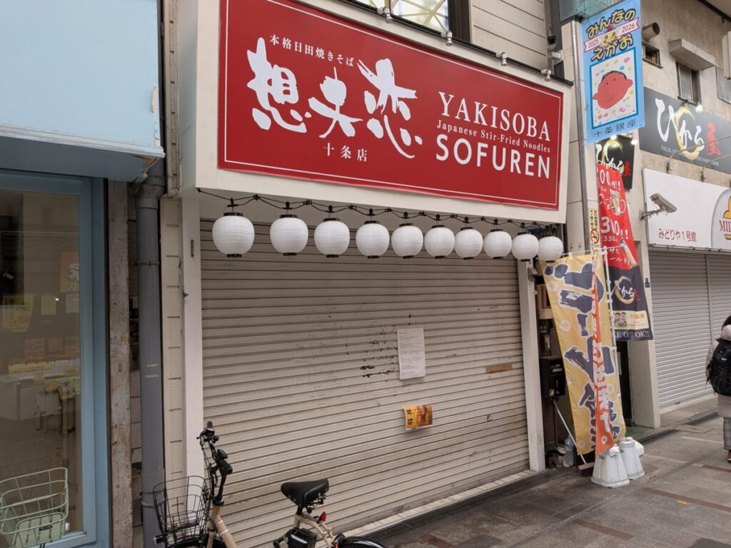 十条銀座にあった日田焼きそばの「想夫恋」が、1月31日をもって閉店したみたい。店頭に貼り紙が貼ってありました。