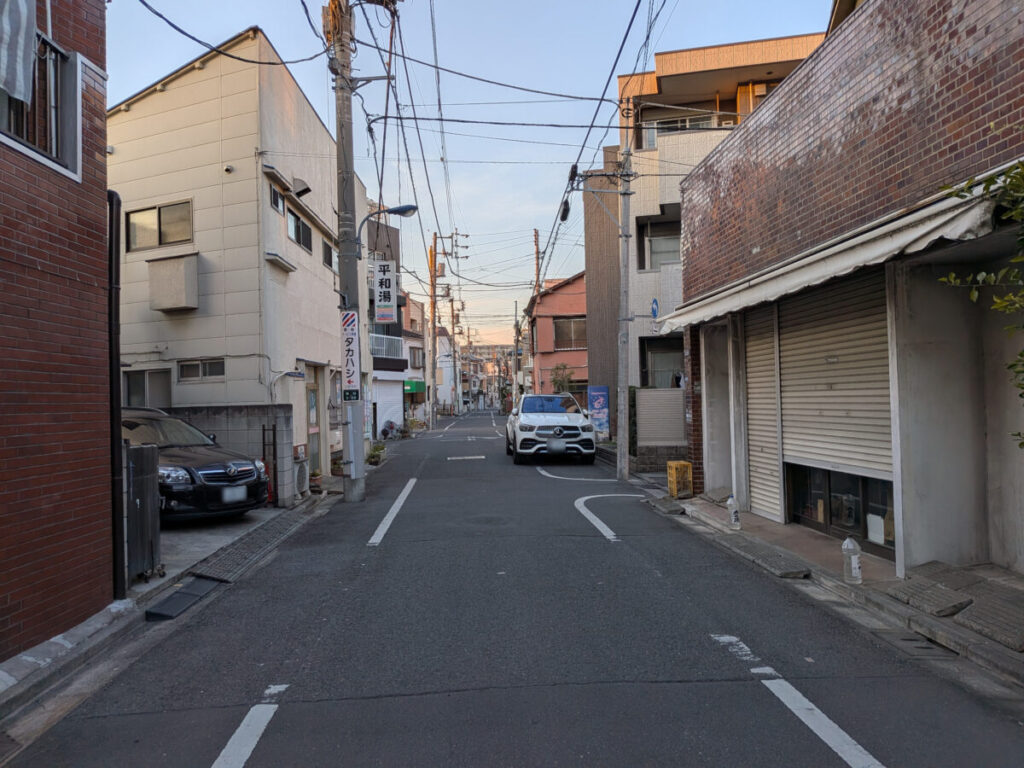 お店を背にして右へ行くと環七にぶつかりますよ。