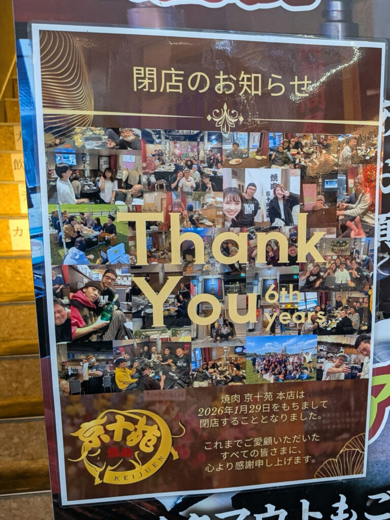 十条銀座の「焼肉 京十苑 本店」が閉店するみたい。