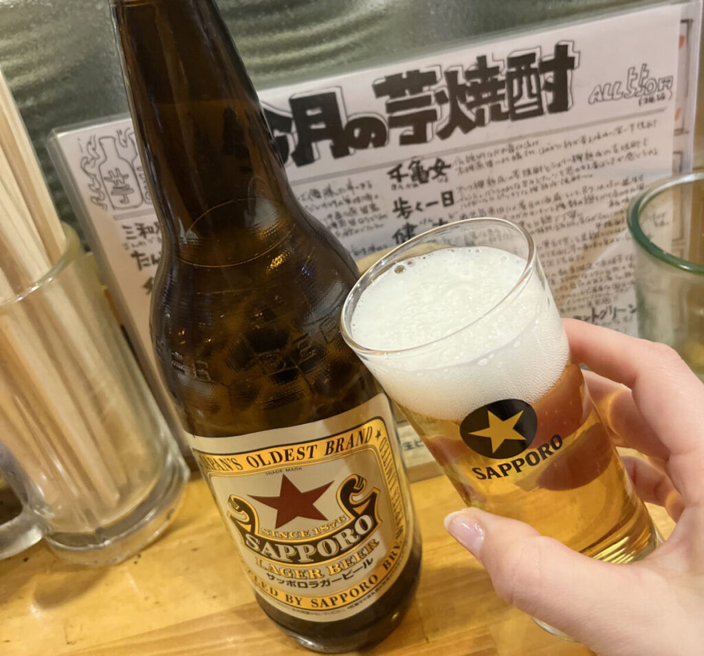 さ~てまずは「サッポロ赤星 大ビン(770円)」!