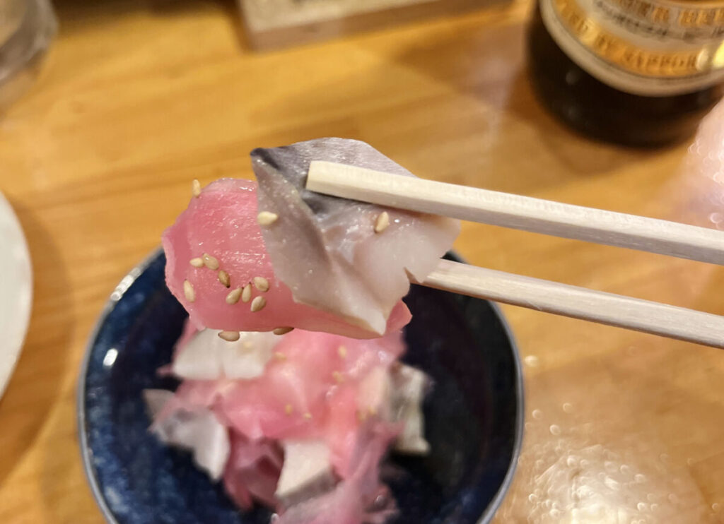 おつまみトップバッターは、”とりあえず一品”より「ガリ〆サバ(528円)」を注文!