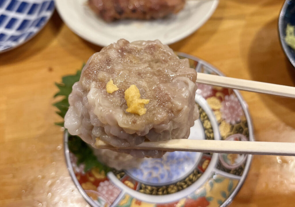 これ、やきとんにも使用している豚のハラミを使って作っているシューマイなんだって!贅沢~!