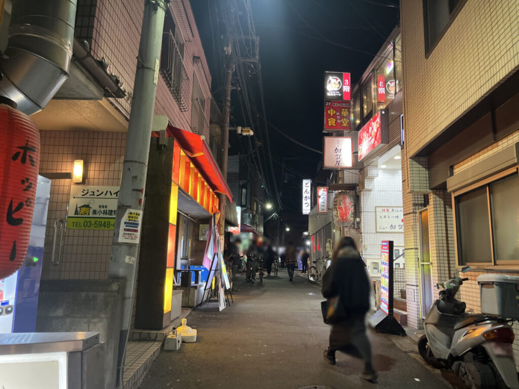 左です。こっちへ行くと「焼鳥どん 東十条店」や「とんかつ みのや」。