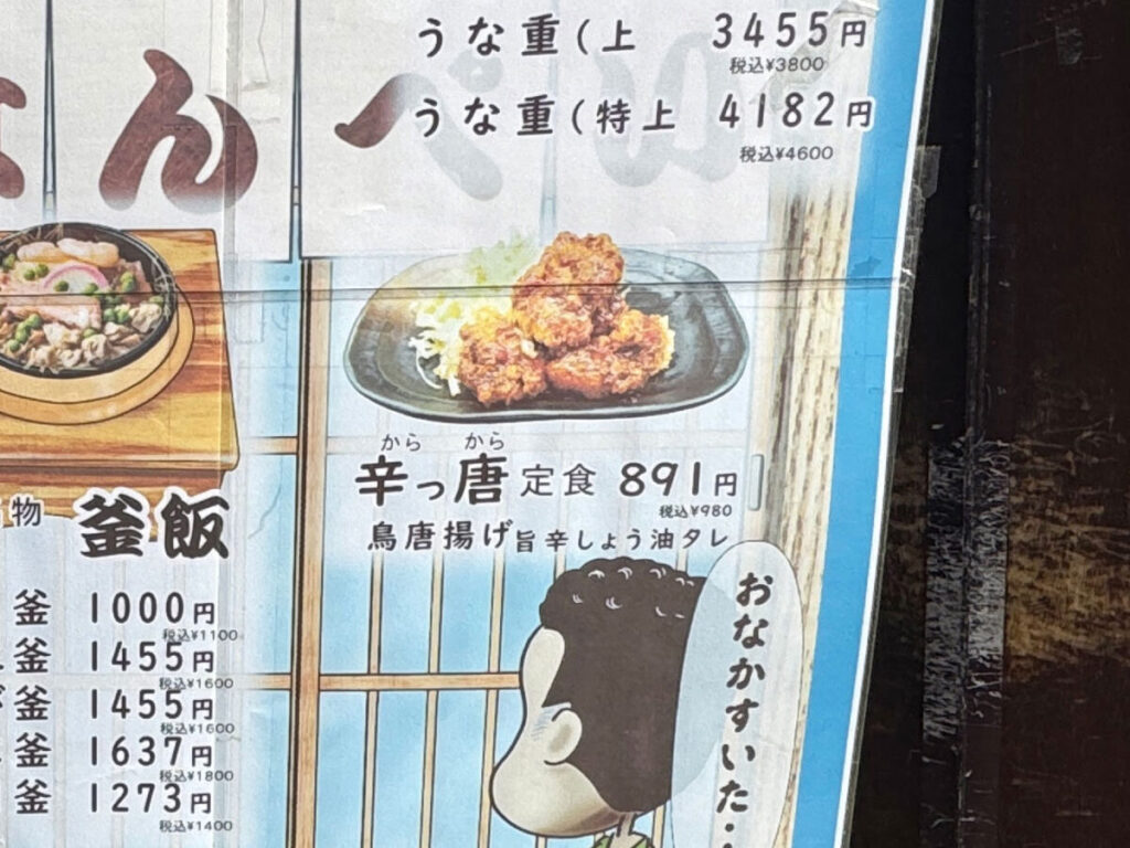 おや?「辛っ唐(からっから)定食」だと?!一瞬にして名前に惹かれちゃった編集員。