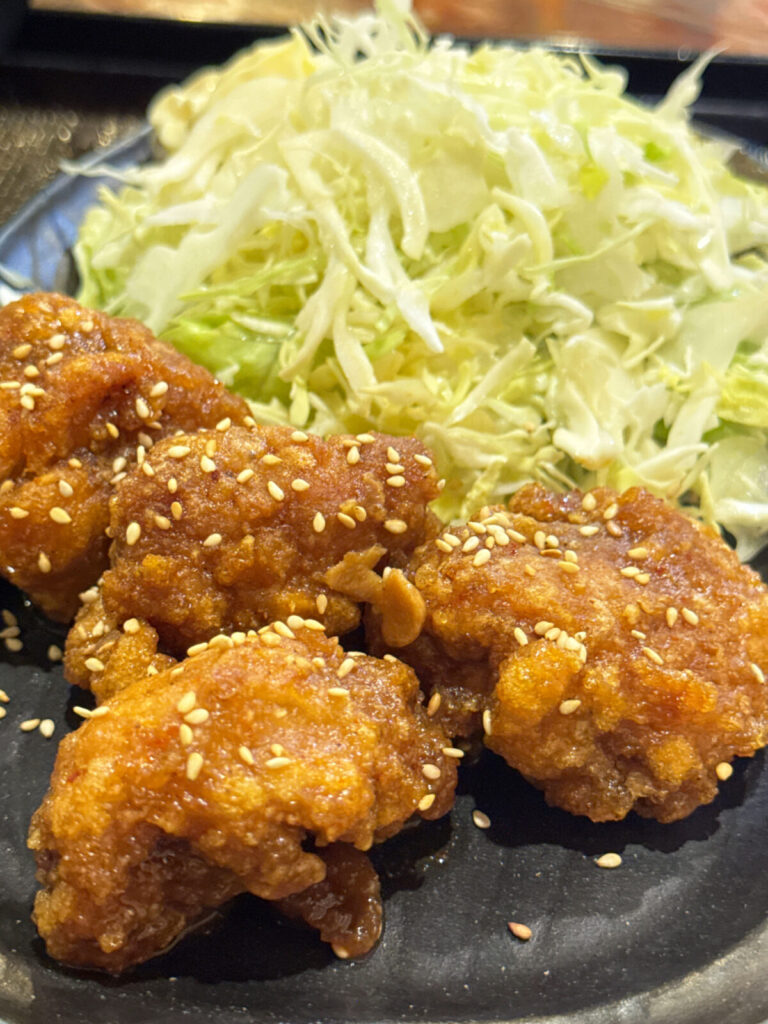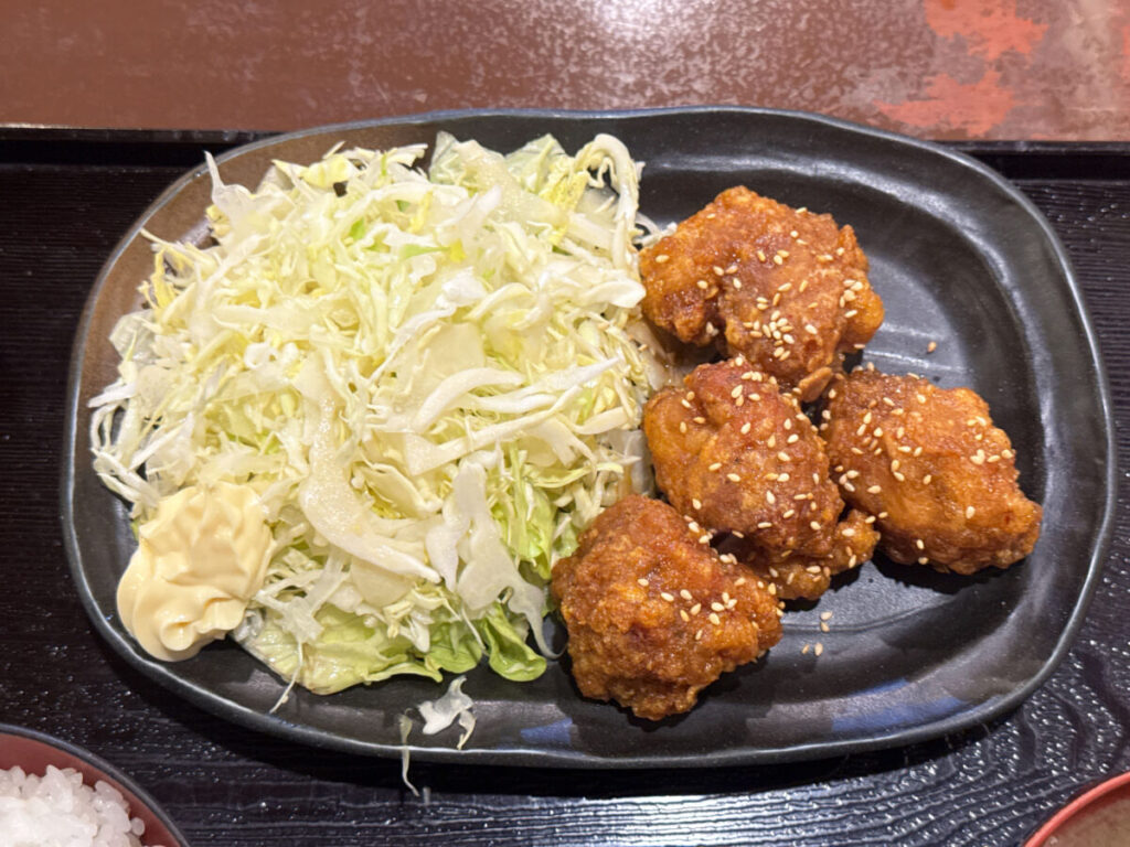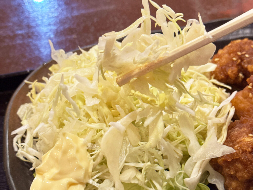 唐揚げが4個どーん!さらにキャベツがモリッモリ♪