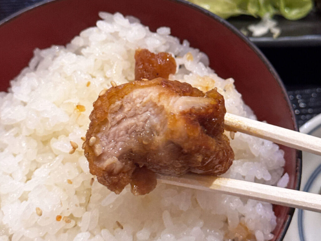 そこに、ニンニクの効いたパンチのあるタレ!こりゃ完全にご飯泥棒だっ!
