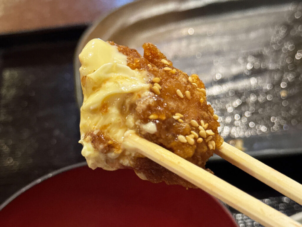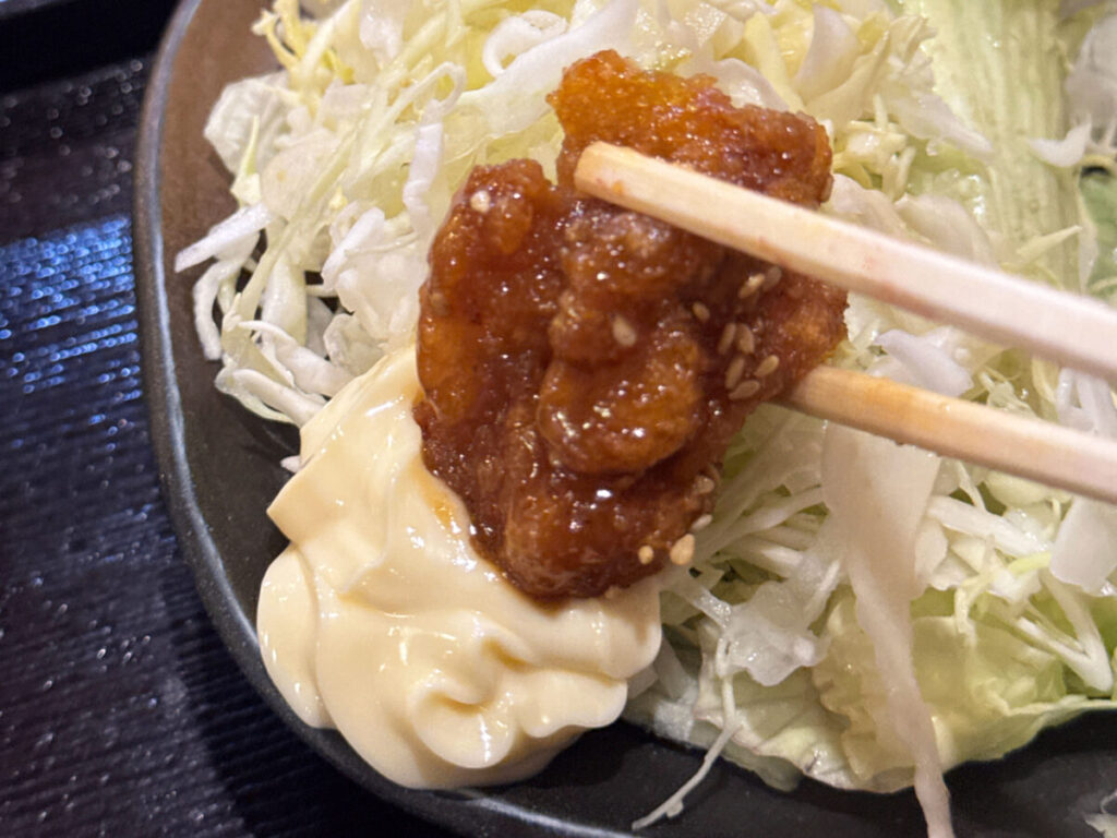 マヨネーズが勝つかと思いきや、にんにくの甘辛タレと調和していてさらに味にパンチが!