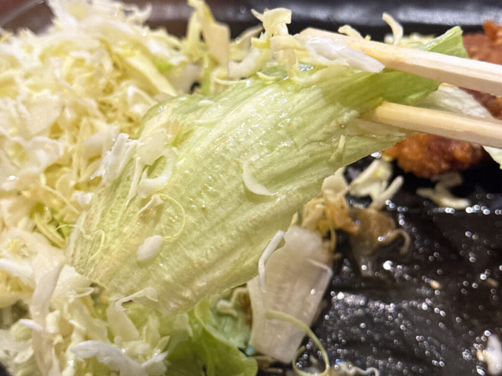 にしても、付け合わせのキャベツの量が嬉しい!下のほうからレタスも出てきた〜!