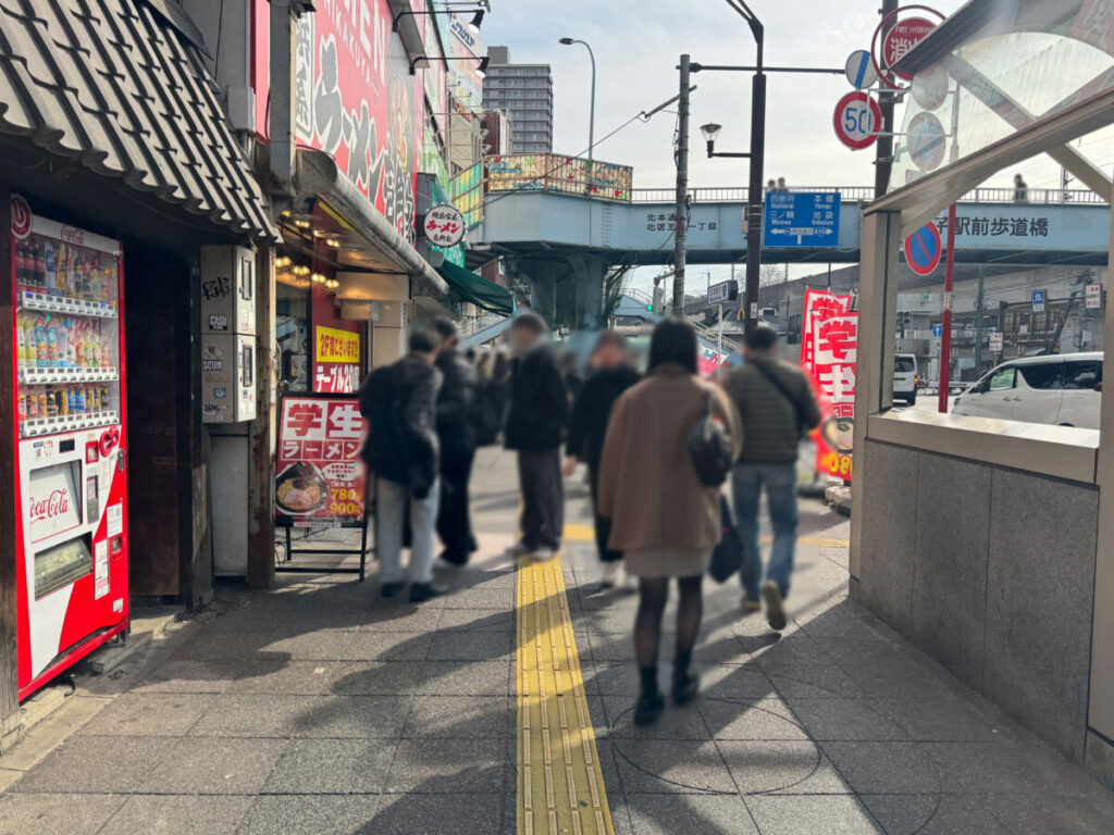 左です。すぐ隣に「横浜家系ラーメン 壱角家」があり、その先に「王子駅前歩道橋」があります。