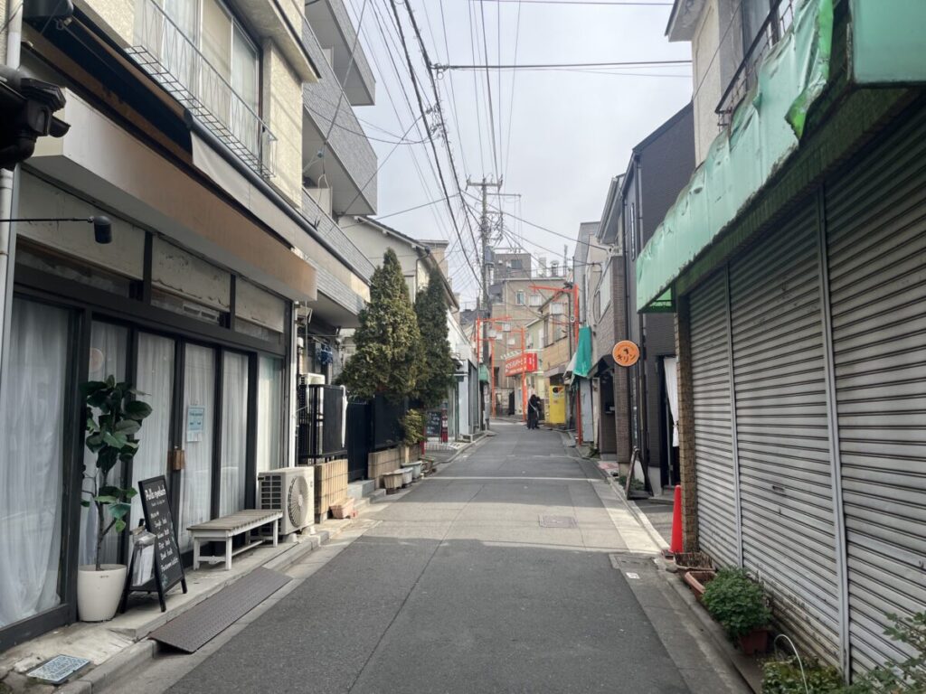 お店を背にして右はこんな感じ。すぐに「sandwich&deli キリン」や「サケトオバンザイ シュミズ」があり、さらに行くと東十条南口。