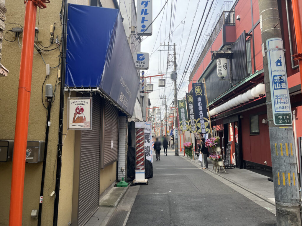 左です。こちらは十条駅方面で斜向かいには「篠原演芸場」があります。