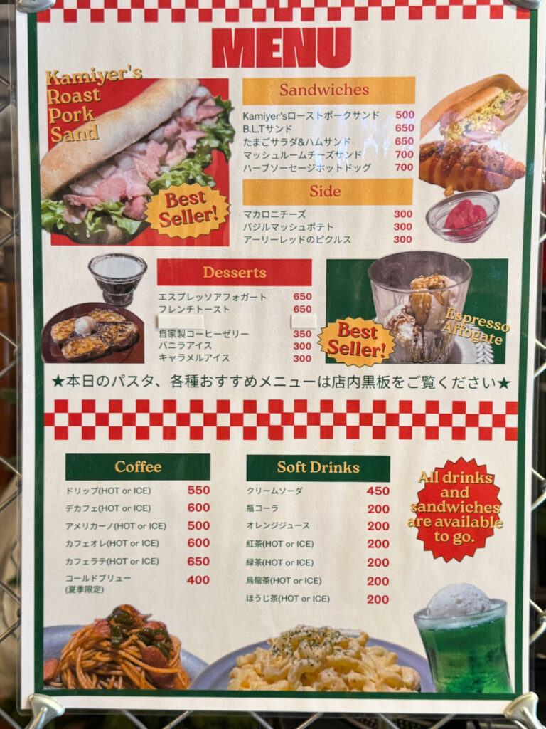メニューはこちら。