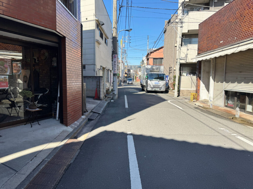 お店を背にして右へ行くと環七にぶつかります。