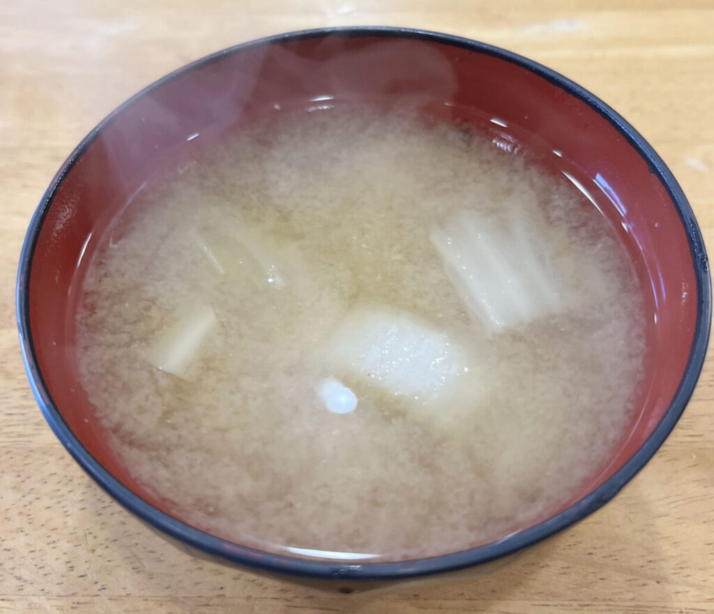 ふあ~、熱すぎないお味噌汁が猫舌のわたしにとってはとてもありがたい。