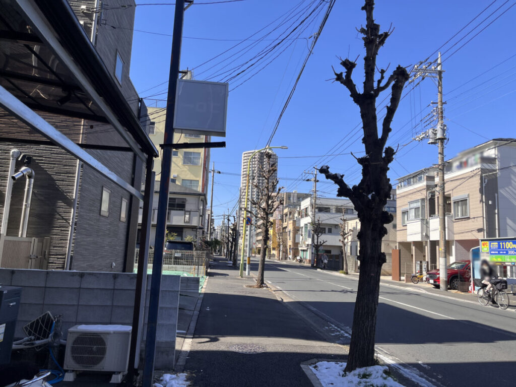 お店を背にして右はこんな感じ。少し行くと「川口工業総合病院」があります。