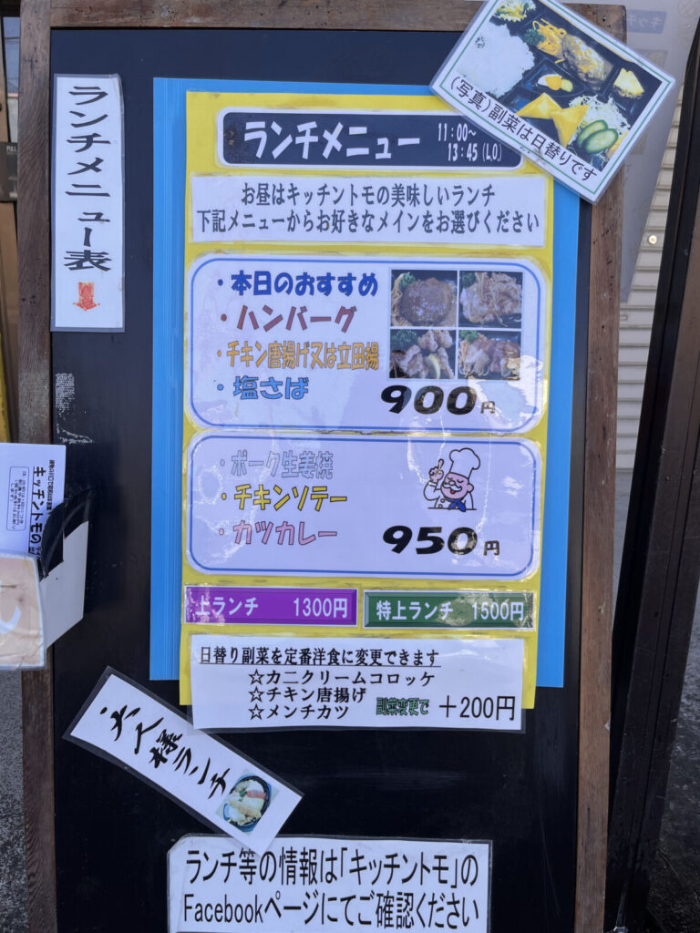 お昼時にお店に行くと、ランチメニューが出ていましたよ。