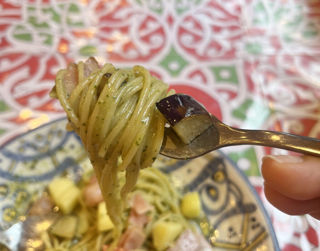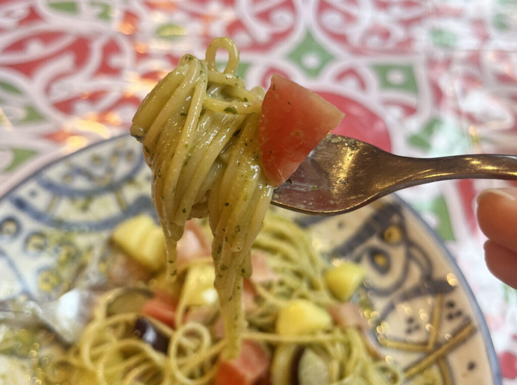 パスタは細目でアルデンテな感じですね。