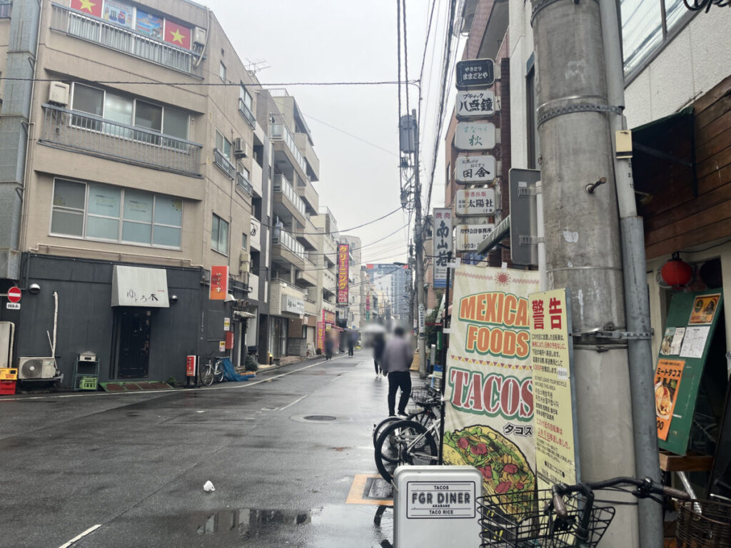 ビル入り口を背にして右はこんな感じ。隣は「FGR diner」で、さらに行くと「五感ビストロ酒場」や「スナック雪子」があります。