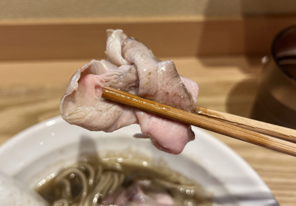 チャーシューは、持ち上げるとお箸の先からやわらかさが伝わってきます。