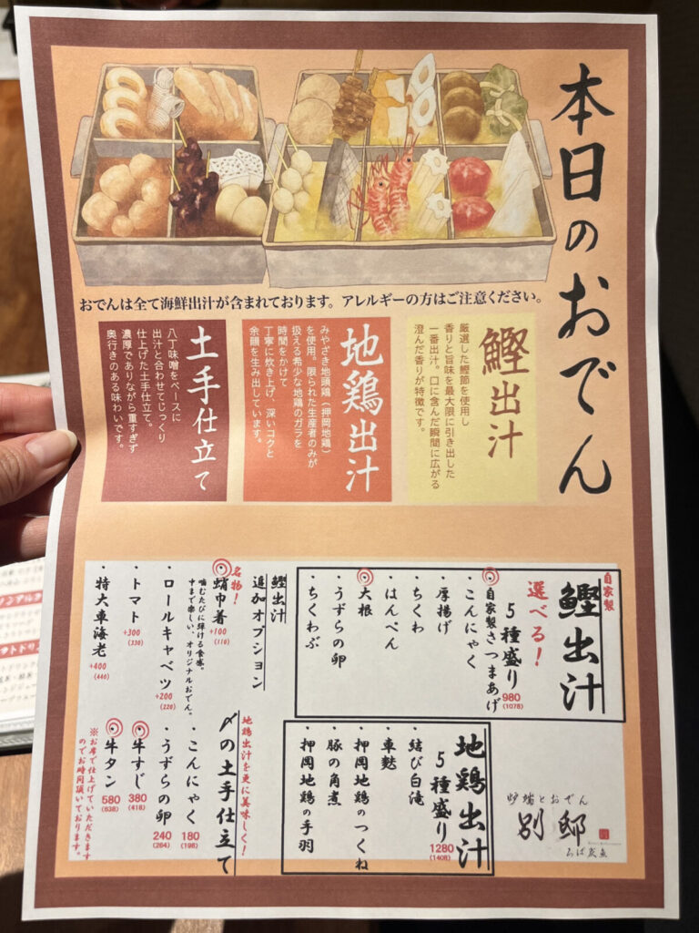 それぞれ盛り合わせを頼んで、出汁の飲み比べなんてしたら楽しそうじゃないですか♪