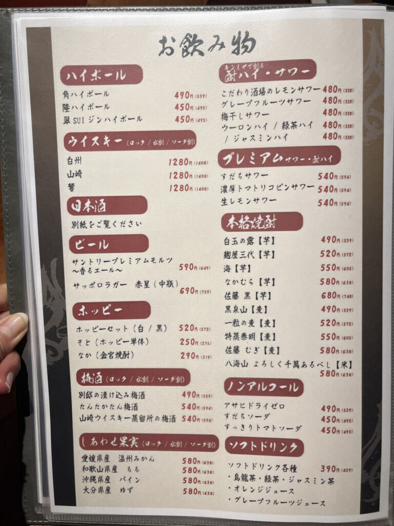 そんな高級感あふれるこちらのお店ですが、なんと基本的には中央街にある系列店「ろば炭魚」と食べ物もドリンクも同じ金額なんだとか!