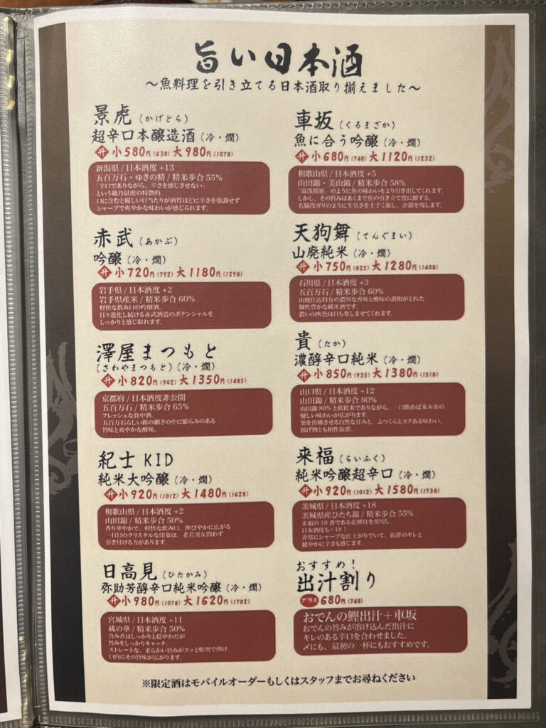 日本酒がたくさんある!魚料理にあわせてくいっといきたいね~♪