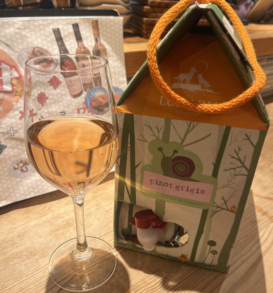 かわいらしいバッグインボッグスのオレンジワイン「ルナーリア ピノグリージョ オレンジ(500円)」!