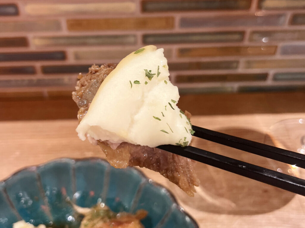 なめらか~な食感とマッシュポテトが、味をまろやかにしてくれるのです♪