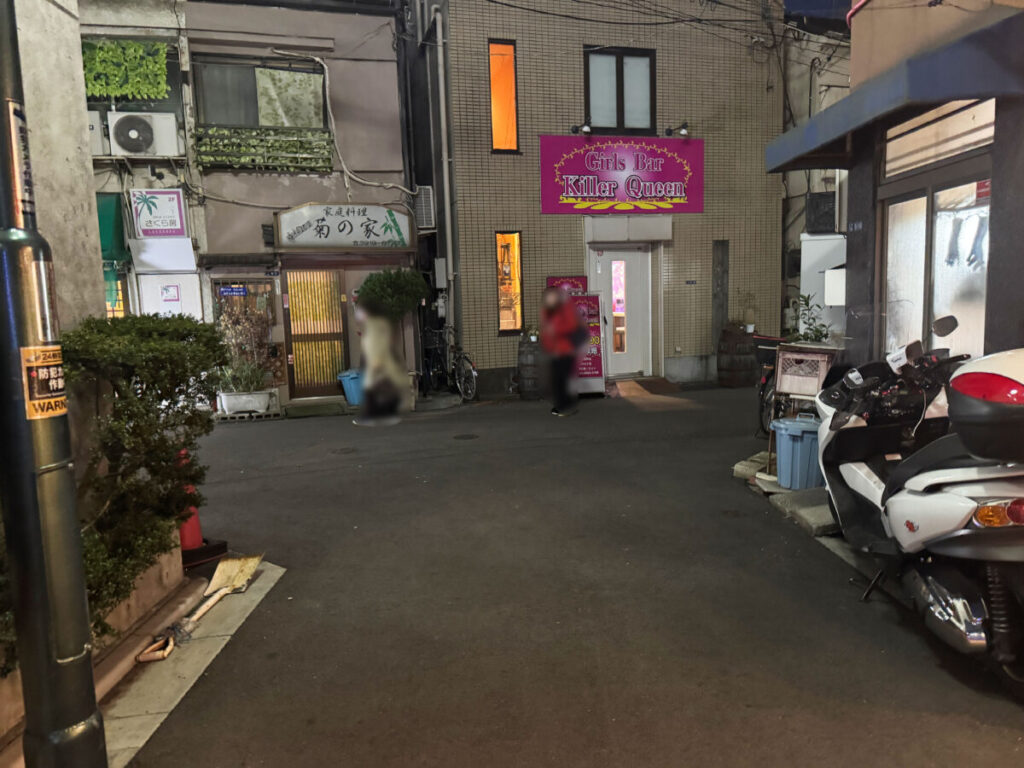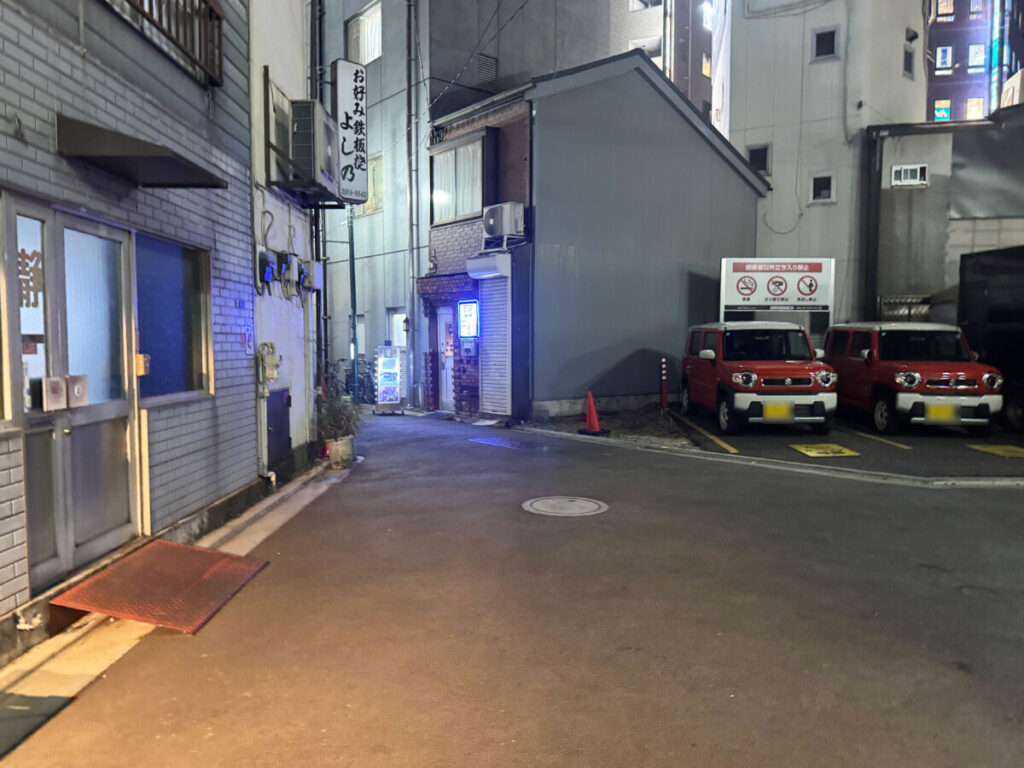 左です。角のところに「プラモデルBAR オーガスタ」があり、左へ抜けていくと「サンスクエア」があり、王子駅前に出ます。