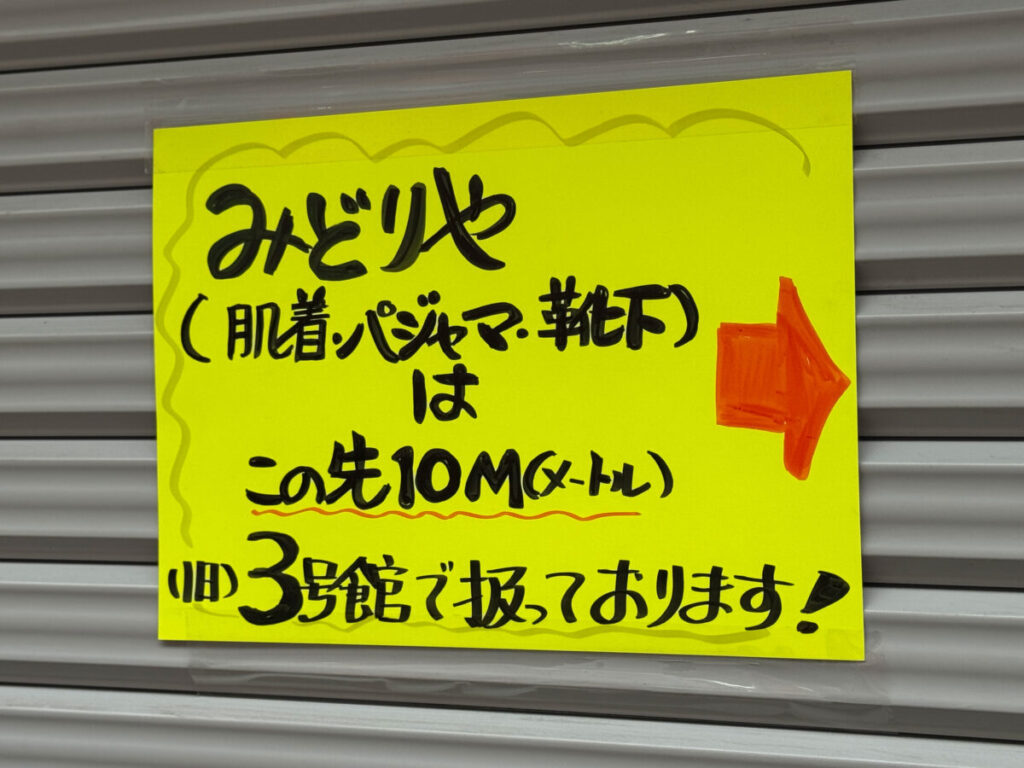 旧3号館の店舗で、1号館と3号館の商品を統合し、新しく「みどりや」として営業されているとのこと。